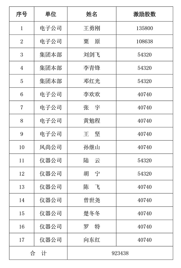 截至2021年10月13日,公司現(xiàn)有庫存股92.3438萬股,因公司在分立時(shí),必須股權(quán)清晰,故本次對庫存股采取激勵(lì)的方式進(jìn)行處理,方案如下: